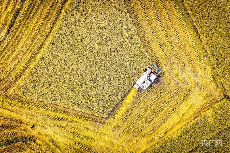 宁远县19.35万亩晚稻已进入成熟收割期(央广网发 李文 摄)