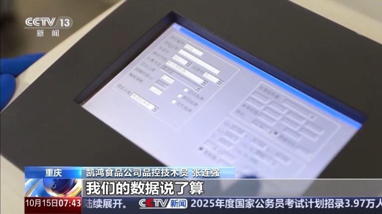 重庆凯鸿食品公司品控技术员 张连强:像牛肉就要检测七项,比如说里面的过氧化脂,精确到了每百克不得超过0.25克,非常严格。产品好不好,能不能走向市场,老板说了不算,我们的数据说了算。