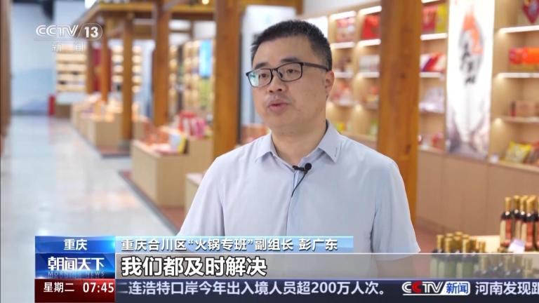 重庆合川区“火锅专班”副组长 彭广东:跑堂是我们川渝地区的方言,实际上就是服务员的意思。我们为企业解决急难愁盼,为它做好服务,大批的企业正在做数字化改造。我们抽调了三十余名骨干力量,对新引进的项目都安排了专人来跟进,各个环节涉及的难点堵点我们都及时解决。