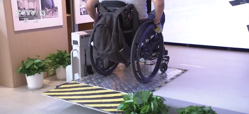 国家无障碍环境展示馆,集中展示了40多个来自全国各地的无障碍环境建设方面优秀案例。复兴号高铁车厢模型拥有可旋停轮椅席、屏幕随时提示字幕等智能配置。沉浸式可升降坡道等高差解决方案可以让长期居家残障人士自主出门。视障者、听障者及所有参观者都可通过触、听、看,独立获取全馆方位信息。