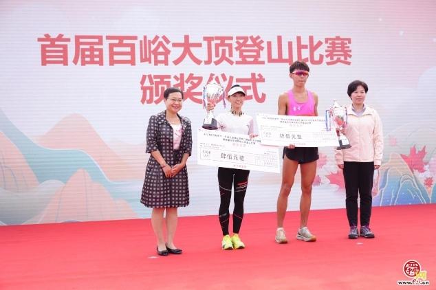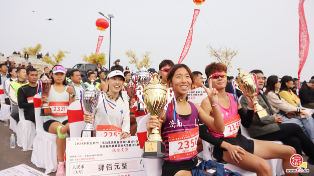 赛后,章丘区副区长赵淑新,区教育和体育局局长李宝光、区文化和旅游局局长宋亦舟、区园林和林业绿化局主要负责人王萍、区教育和体育局总督学高永新、区自然资源局副处级领导干部赵文忠为获得女子组、男子组的冠、亚、季军颁奖并为第九届红叶文化旅游节按响了启动键。