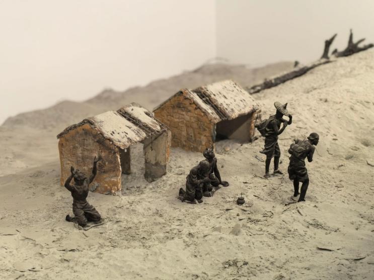 △谷文昌纪念馆里展示的当年东山人民饱受风沙灾害之苦的情景。(总台央广记者潘毅拍摄)