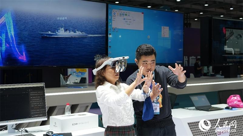 观众在新媒体技术展进行AR互动体验。人民网记者 吴茜薇摄