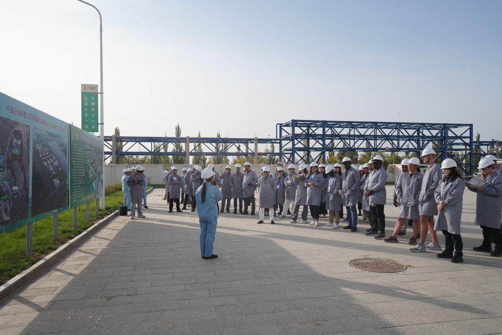 10月16日,嘉宾在中国石化新疆库车绿氢示范项目参观。新华社记者刘梦琪摄