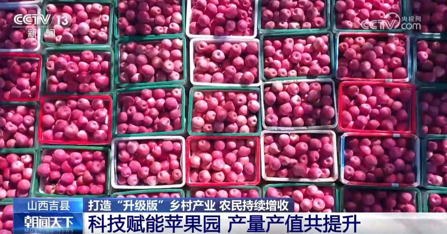 在山西吉县,苹果专业村占到了当地行政村总数的80%以上,为了让苹果产业做强,当地以科技赋能苹果园,通过大数据、云计算进行智能灌溉、精准施肥,同时运用矮化密植栽培技术实现了苹果产量和产值的提升,这项技术已经运用在全县5000亩苹果地。