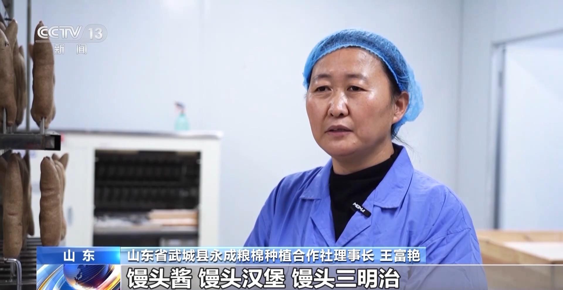 山东省武城县永成粮棉种植合作社理事长 王富艳:馒头酱、馒头汉堡、馒头三明治、炒馒头丁、烤馒头片等等创新了多种吃法,让大家有更多的新选择,这就是我们餐桌上的馒头新花样。
