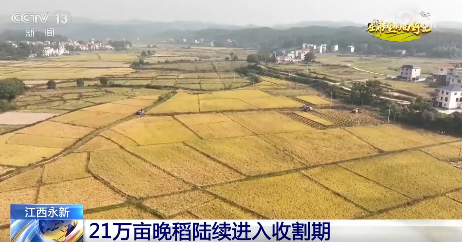 眼下,江西吉安市永新县的21万亩晚稻陆续成熟,当地农户抢抓晴好天气进行机械化收割,广袤的田野上一片繁忙景象。