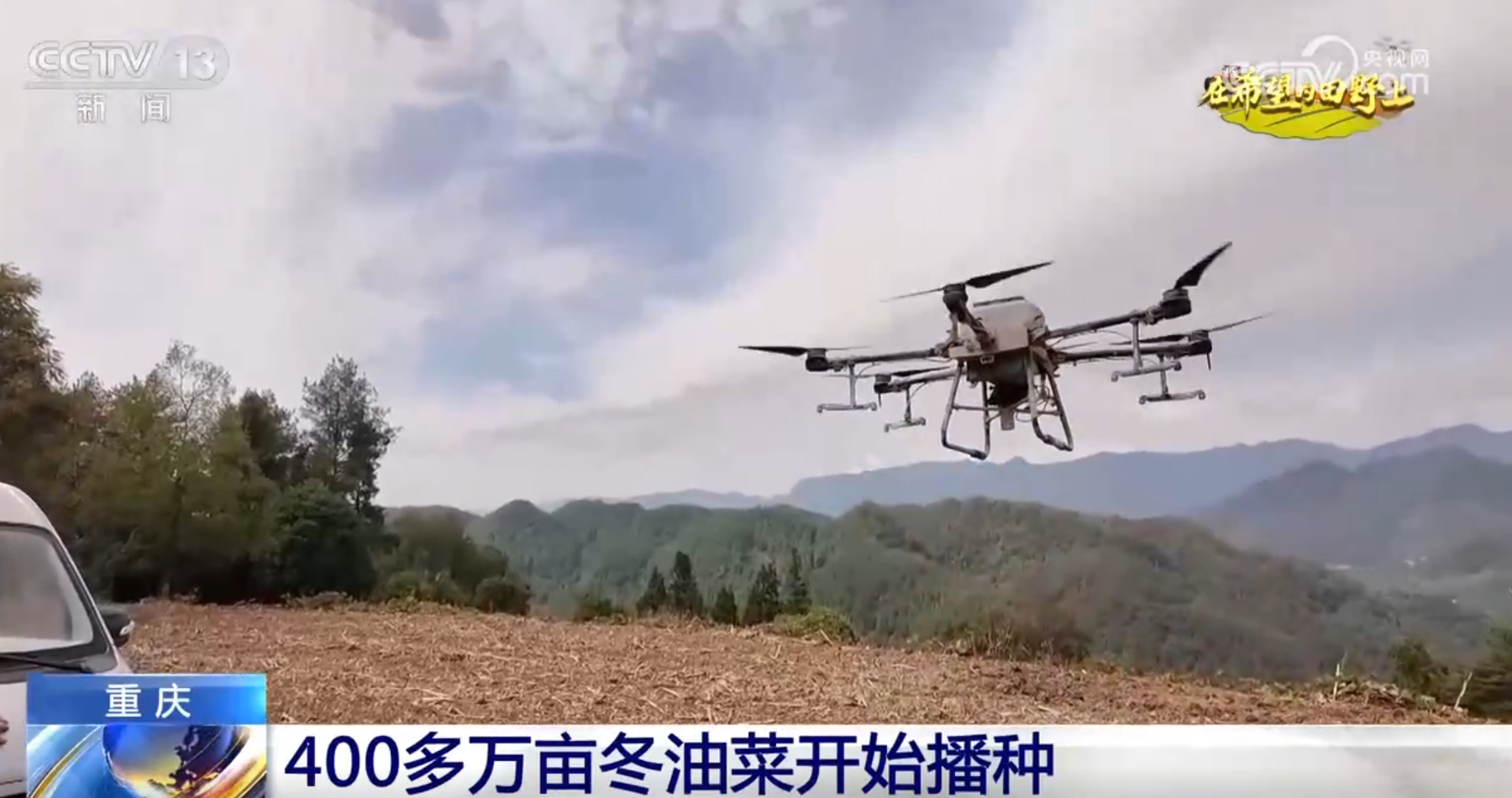 这两天,在重庆各乡镇,村民们趁着雨后放晴、土地湿润松软,抓紧开展秋播秋种。黔江区石家镇火石垭村的油菜基地,农耕机在田地里进行深翻犁地作业。随后,农机手操控装有油菜种子的植保无人机,沿着设定航线有序开展飞播撒种作业。基地负责人介绍,这500多亩油菜田用无人机一天内就完成播种。