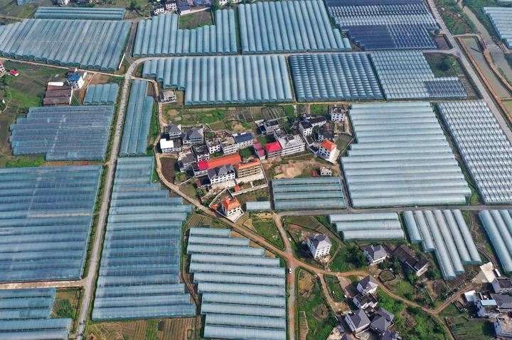 这是江西省赣州市于都县梓山镇潭头村的果蔬种植基地(2021年4月29日摄,无人机照片)。新华社记者 万象 摄
