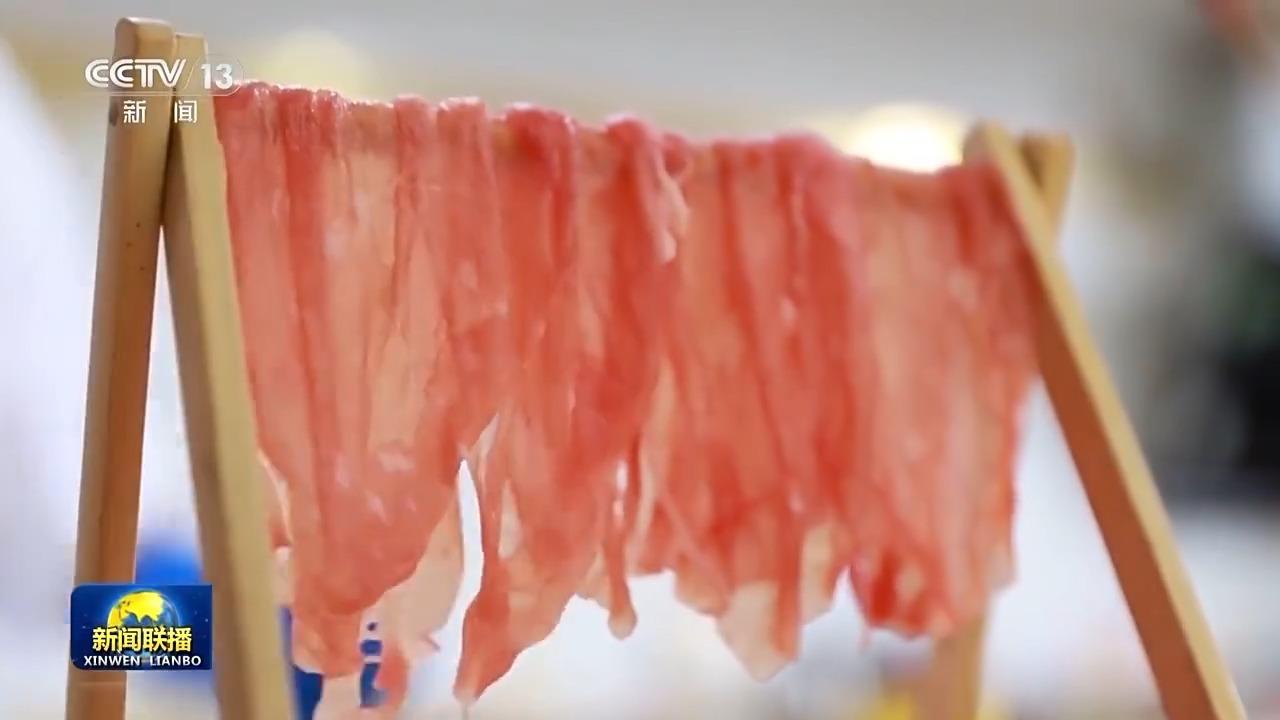 随后的生产环节,数字化技术更是随处可见。一颗小小的干辣椒,要经过X光等五级智能筛选,才能送上生产线;全封闭的反应釜替代了传统炒锅,技术员把配方信息输入系统后,设备会自动配料加工生产,工作效率提升了10倍;1分钟左右,一块冷鲜肉就被切割成近百块几毫米的薄片,智能化检测环节,结果精确到小数点。