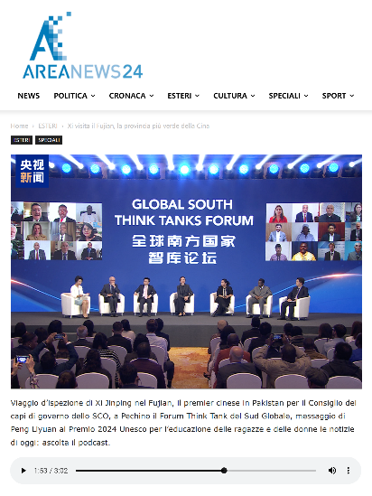 南方之声,落播多国。总台CGTN与意大利埃瑞亚通讯社联合制作播客节目《全球南方国家智库论坛聚焦和平、安全与发展》,在意大利埃瑞亚通讯社网站、罗马之声电台、米兰广播新闻台等多家电台新闻栏目中播出,覆盖意大利重点城市和地区及梵蒂冈等500万人口。总台记者连线老挝国家电视台报道论坛内容,相关专题片同步播出。此外,总台论坛相关报道在柬埔寨国家电视台、斯里兰卡ITN国家电视台、巴基斯坦国家电视台、利比里亚国家电视台等同步播出。