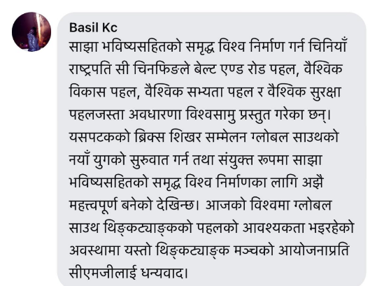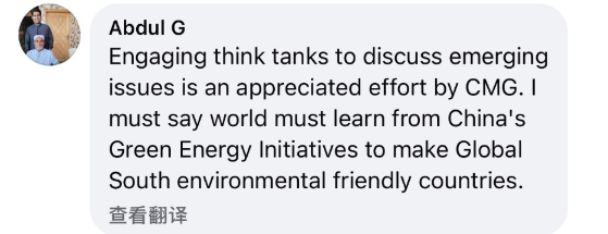 海外网友,点赞论坛。巴基斯坦网友@Audul G为总台论坛点赞,“CMG邀请智库讨论新兴问题的举措值得赞赏。我必须说,世界必须学习中国的绿色能源倡议,让全球南方国家成为环境友好型国家。”尼泊尔网友@Basil Kc留言,“为构建繁荣世界、人类命运共同体,中国国家主席习近平向世界提出共建‘一带一路’倡议、全球发展倡议、全球安全倡议、全球文明倡议等理念。这次金砖国家领导人会晤对于开启全球南方新时代、共同建设繁荣世界非常重要。感谢CMG在此之际组织这样一个智库论坛。”