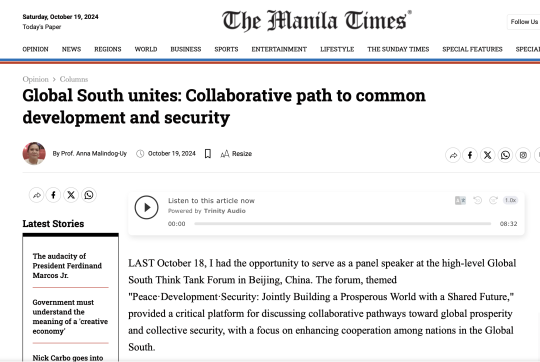 《马尼拉时报》刊发菲律宾亚洲世纪战略研究会副会长文章