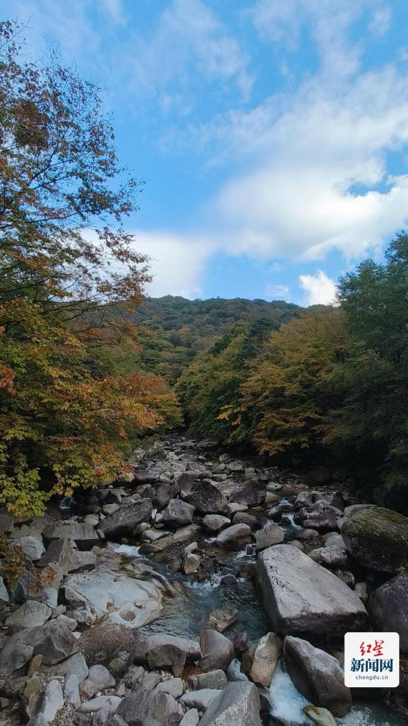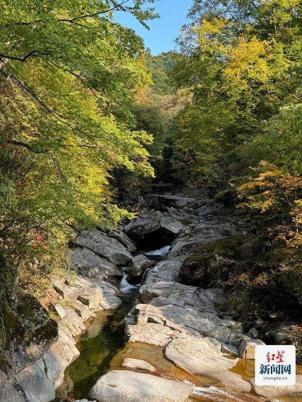 同样感受到森林带来的治愈的还有于顺利。这里对他来说像是进入自己的森林游乐场,兴奋不已。“你看这里叶子为什么从绿到黄到红,呈现不同颜色,答案就是气温和植物色素。叶子的颜色是由色素导致,包括叶绿素、类胡萝卜素、花青素等。秋冬到来,天气降温,对于红叶树种来讲,树叶里的叶绿素会不断被分解,而花青素却大量增加,此时叶子里的水分变少,细胞呈酸性,花青素在酸性状态下为红色。则树叶由绿变红。”于顺利赞叹到,看到“层林尽染”,就知道光雾山生态丰富,植物多样性非常丰富。
