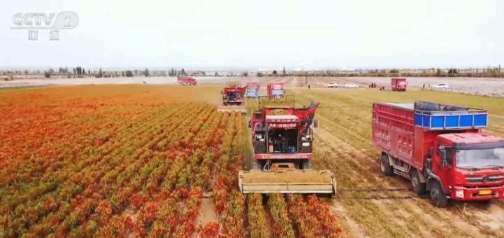 新疆玛纳斯:辣椒喜获丰收 机械采收降本增效