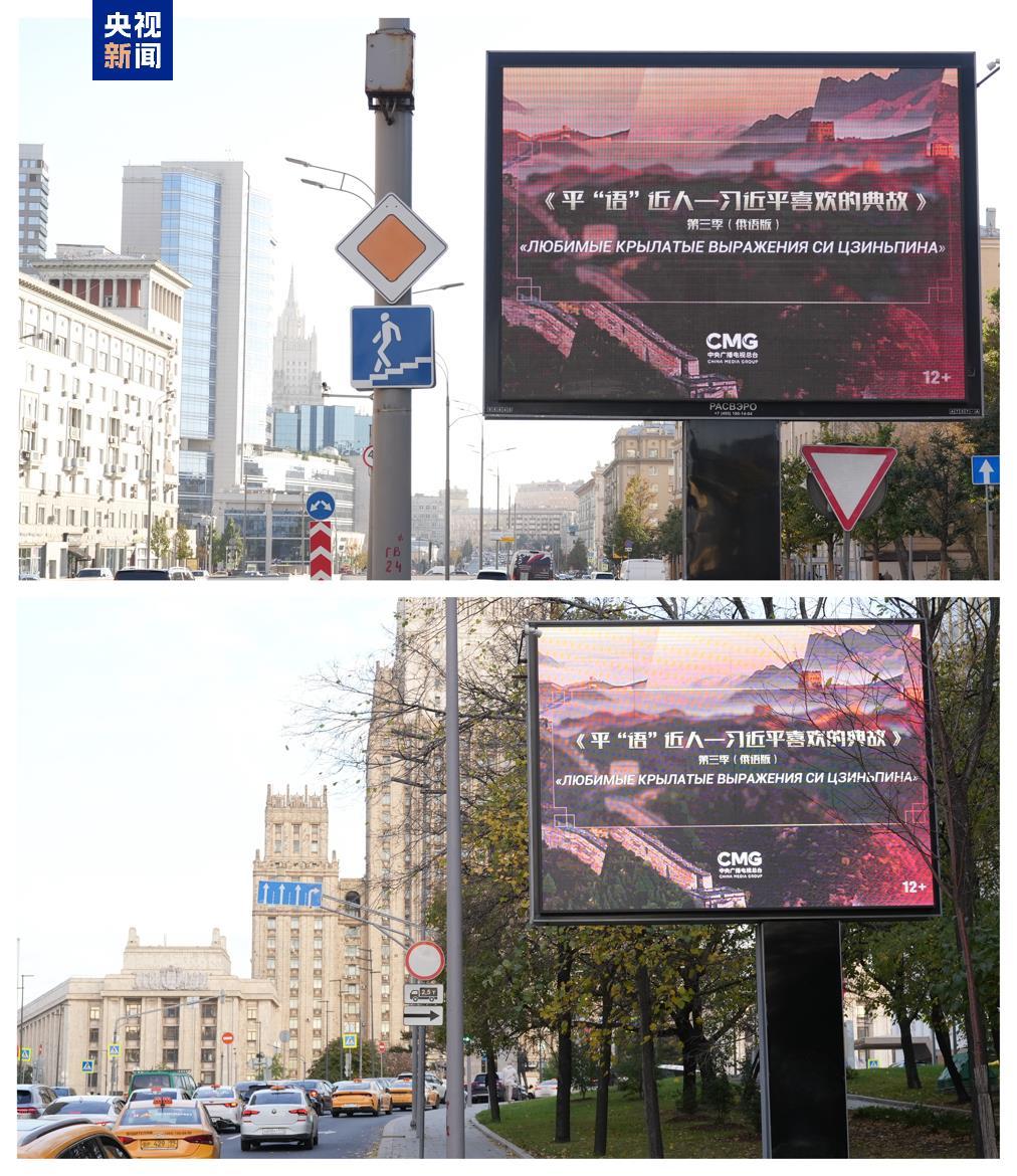 10月19日起,《平“语”近人——习近平喜欢的典故》第三季(俄语版)海报在莫斯科中央行政区的户外大屏滚动播放。俄罗斯各界人士对节目落地播出表示热烈期待,认为节目将带领俄民众更深入领略中国领导人治国理政智慧,增进了解历史悠久的中华文明。