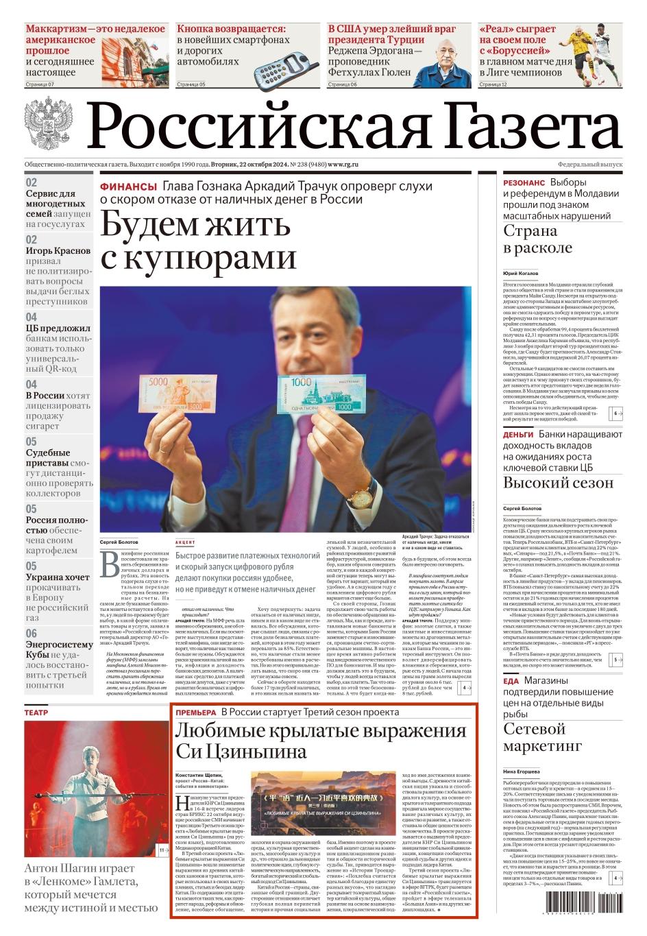△俄罗斯政府机关报《俄罗斯报》头版刊发节目预告消息