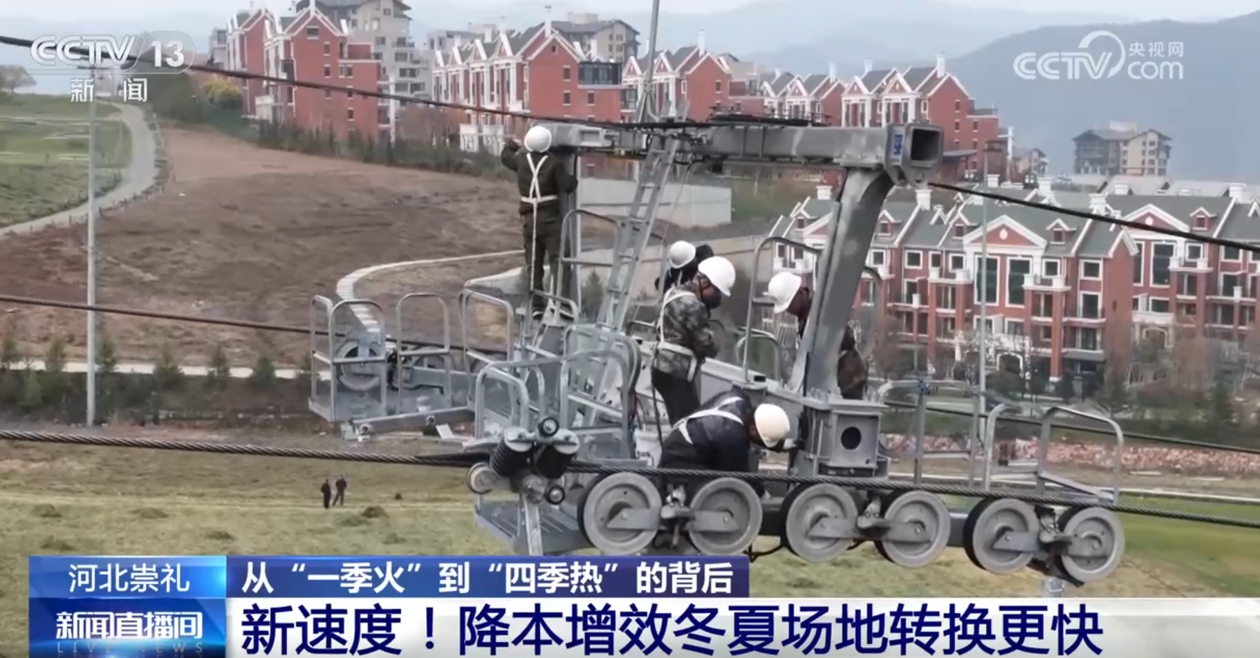 在崇礼,每年十月中旬到十一月初是滑雪场的冬夏转换期,工作人员需要在这个窗口期内完成人工造雪、滑雪设备调试等工作,为冬季“开板”营业做准备。记者在一家滑雪场看到,工作人员正在对缆车等设备进行检修。负责人告诉记者,和去年相比,今年他们的筹备工作提前了一个星期左右。
