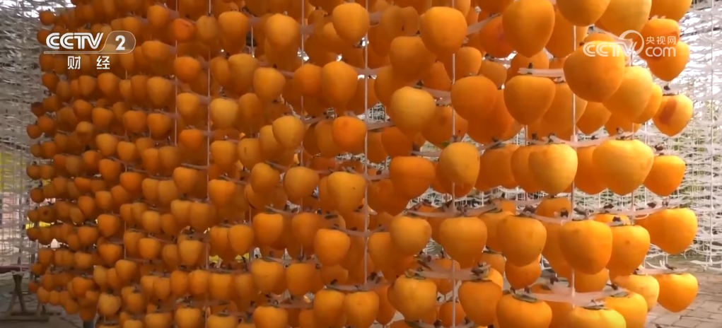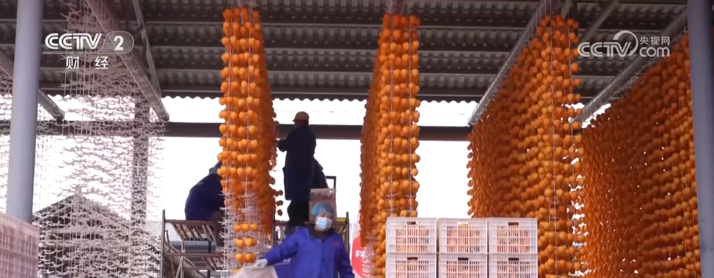 除了传统的柿饼加工外,富平当地还拓展出冰柿、柿子饮品、柿叶茶等10余种产品。近年来,富平县柿子栽种面积已达36万亩,年产鲜柿28万吨,加工柿饼7万吨,柿子全产业链产值达到65亿元,有效带动了柿农增收。