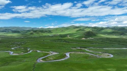 在青海省果洛藏族自治州达日县境内拍摄的黄河(2024年7月31日摄,无人机全景照片)。新华社记者 张龙 摄