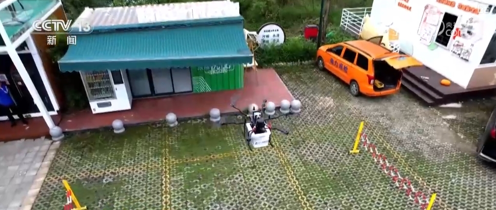 在成都市新都区的一处快递分拣中心前,随着操作人员在控制台按下指令,载着快递包裹的无人机转动旋翼、腾空而起,按照设定航线,飞越17公里的农田山林。20分钟后,无人机缓缓降落在清流镇水梨村。住在附近的村民张女士在收到快递短信后来到快递驿站,取出了自己的包裹。