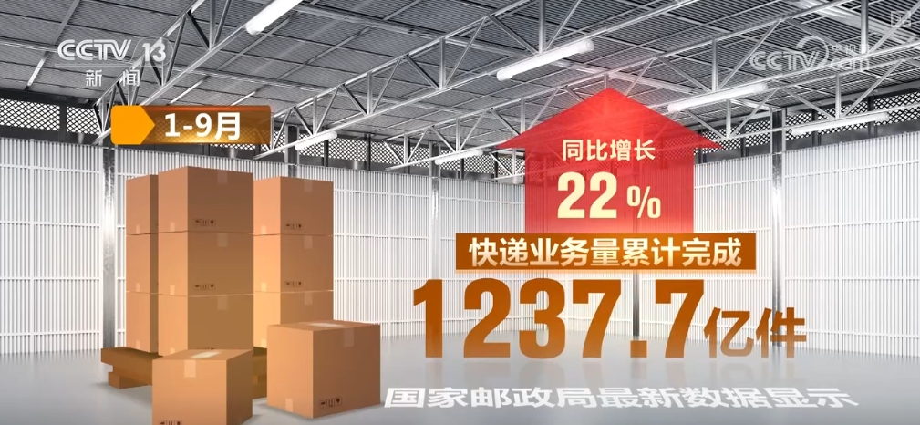 央视网消息:记者从国家邮政局获悉,前三季度,我国邮政行业寄递业务量完成1376.7亿件,同比增长19.6%。其中,快递业务量累计完成1237.7亿件,同比增长22%。