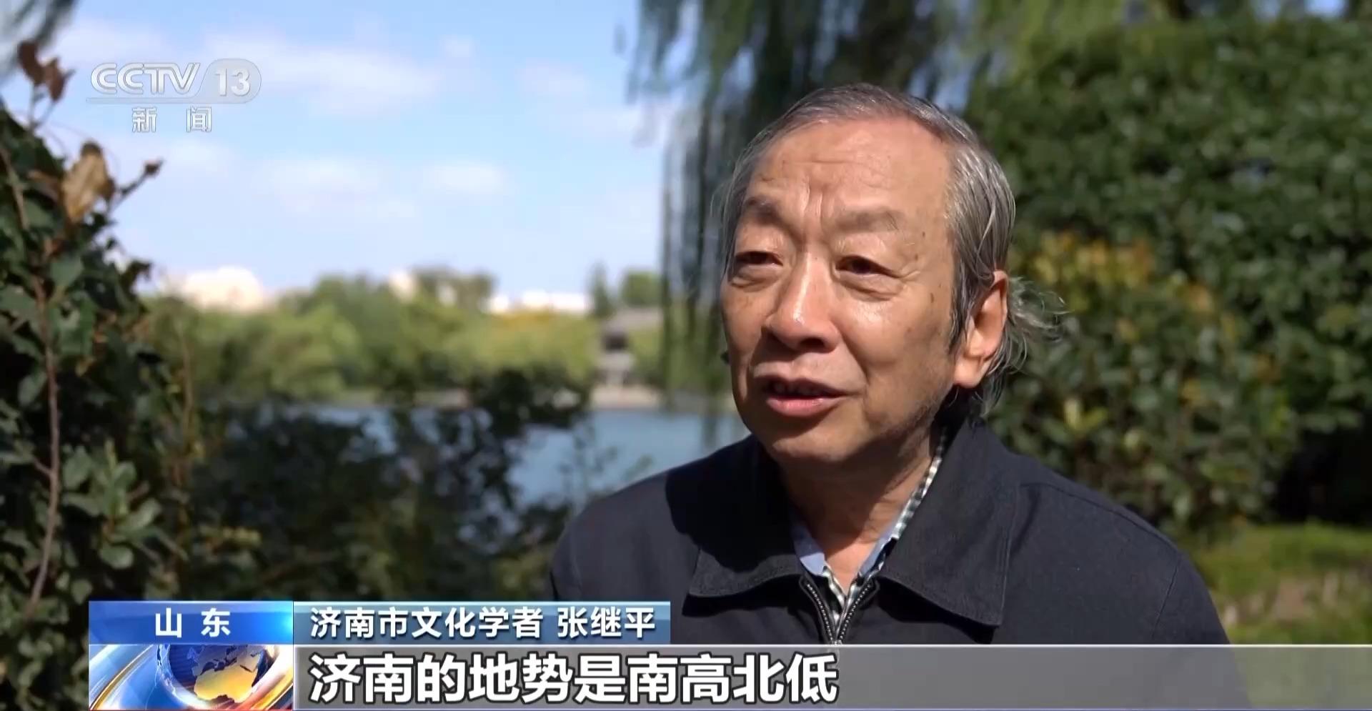 济南市文化学者 张继平:济南的地势是南高北低,南部山区石灰岩渗水,北边火成岩不渗水。泉水汇集到这个低洼地带之后,就喷涌而出。济南的泉水有个特点,形态是喷涌的,生生不息。