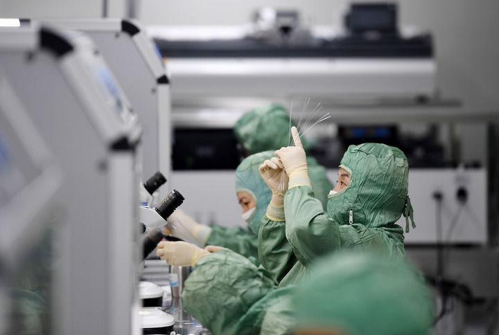 在赛诺医疗科学技术股份有限公司天津生产基地,工作人员在导管制备室车间组装球囊导管(2024年9月9日摄)。新华社记者 赵子硕 摄
