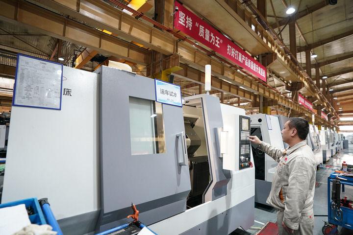 通用技术集团沈阳机床的工人在车间工作(2023年2月14日摄)。新华社记者 潘昱龙 摄