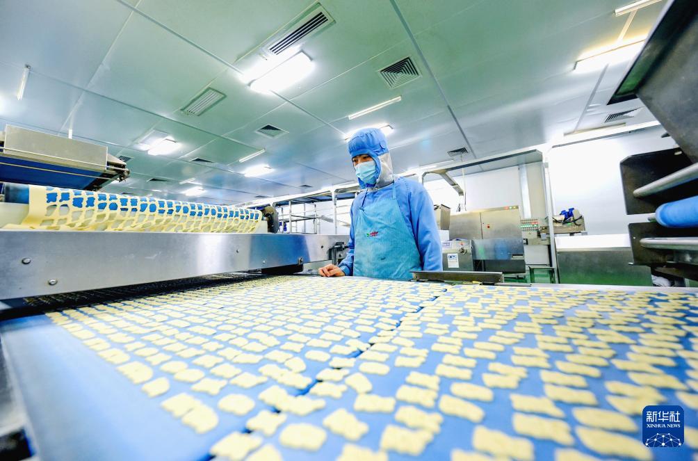 揉面、发酵、成型、烘烤、喷油……在河北味盟生物科技食品有限公司生产车间,不到40分钟,就有一批弥漫着诱人香气的苏打饼干从自动化生产设备上包装下线。