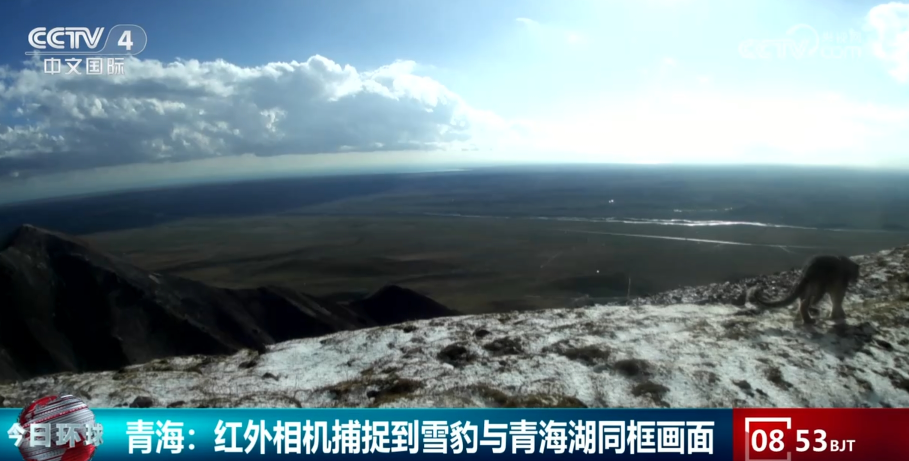 青海:红外相机捕捉到雪豹与青海湖同框画面