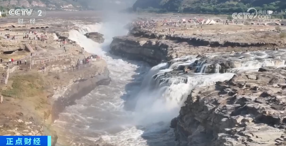近日,位于晋陕峡谷之间的黄河壶口瀑布景区出现瀑布与彩虹同框的美景,吸引了众多游客和摄影爱好者前来观赏。