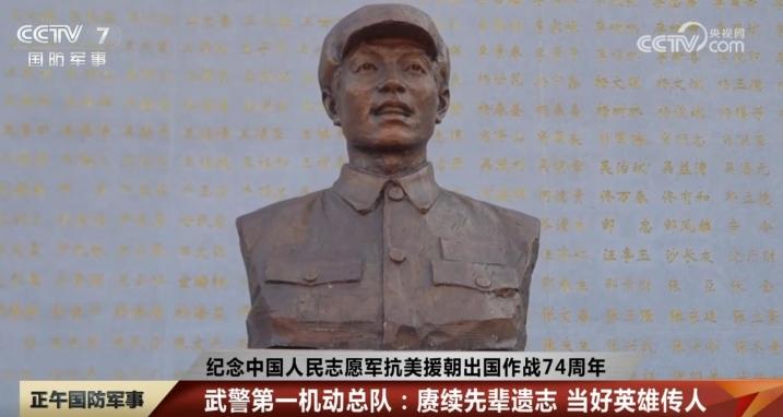 武警第一机动总队某支队前身是一支战功赫赫的英雄部队。在抗美援朝战争中,特等功臣、一级战斗英雄曹玉海带领全营苦战七天七夜,歼灭美军680余人,创造了志愿军营级建制歼敌最高纪录。在该单位的缅怀先烈广场,官兵们在曹玉海的雕像前脱帽默哀,聆听革命前辈的英雄事迹。