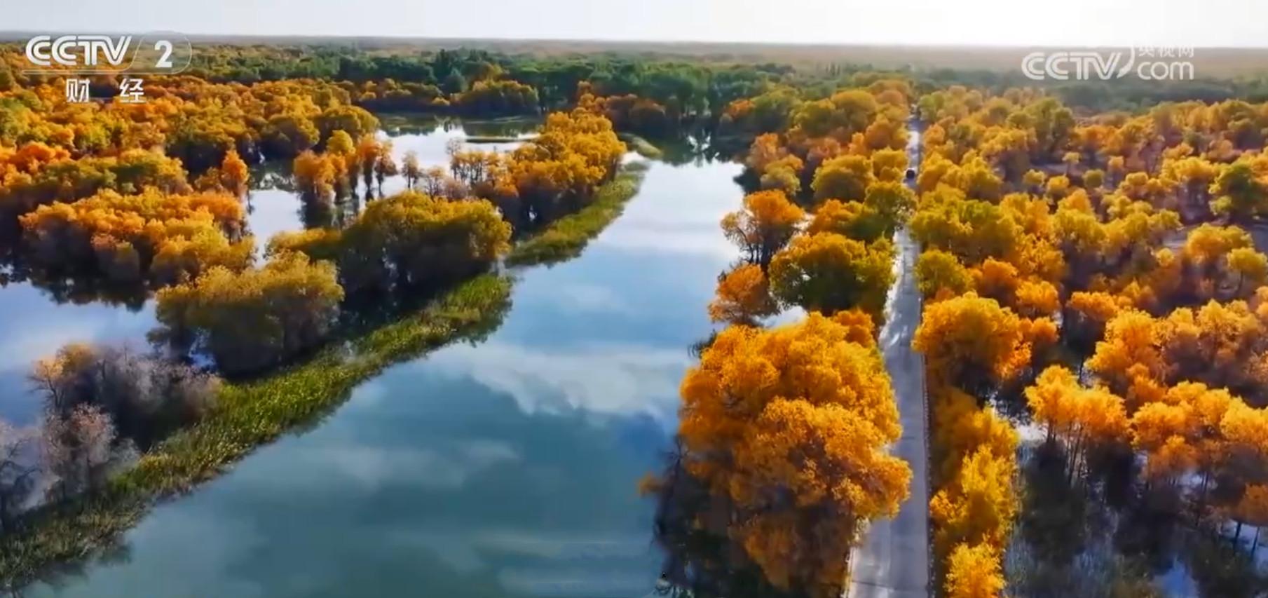 眼下,新疆塔里木河流域沿岸近1700万亩胡杨林陆续披上“金装”,进入秋季最佳观赏期。在新疆巴州轮台县境内的胡杨林里,金色的胡杨与碧水、大漠相互映衬,共同构成一幅秀美的秋日画卷,吸引大批游客和摄影爱好者前来观赏游玩。