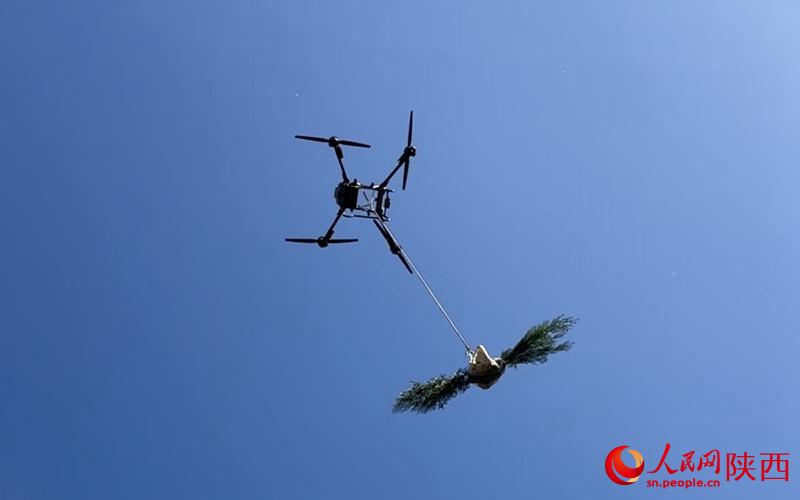 “悬崖造林队”用无人机运树苗。人民网记者 白鸽摄