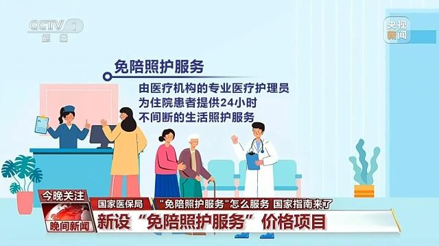 为积极适应老龄化社会发展,缓解“一人住院,全家奔波”的后顾之忧,今天,国家医保局出台护理类立项指南(试行)和优化调整护理价格政策通知,统一指导各省规范护理价格项目;同时新设“免陪照护服务”价格项目,满足群众多样化的护理服务需求。
