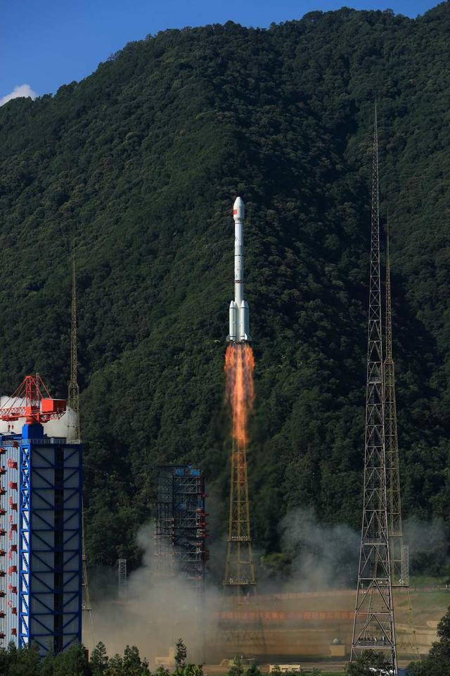 2024年9月19日9时14分,我国在西昌卫星发射中心用长征三号乙运载火箭与远征一号上面级,成功发射第59、60颗北斗导航卫星。新华社发(杨志远 摄)