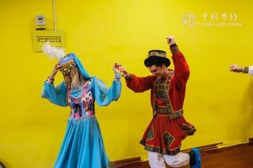 中国日报网10月27日电 10月26日,2024年“中国有约A Date With China”国际媒体采访团一行来到库尔勒市巴娜舞蹈培训中心,换上民族服装沉浸式体验维吾尔族传统舞蹈的魅力。