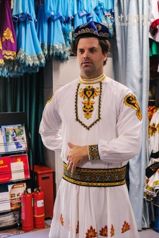 在参观期间,采访团一行纷纷换上自己喜爱的新疆传统服饰,在音乐中翩翩起舞,感受来自维吾尔族传统舞蹈热情与活力。