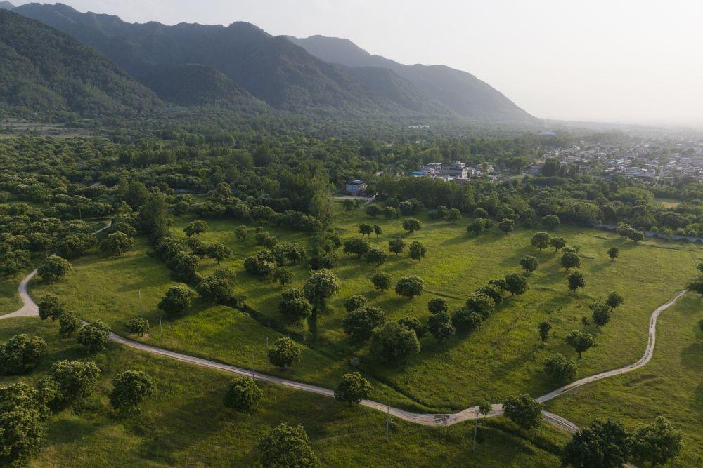 西安市长安区子午街道南豆角村的板栗古树群(2024年5月15日摄,无人机照片)。新华社记者 邵瑞 摄