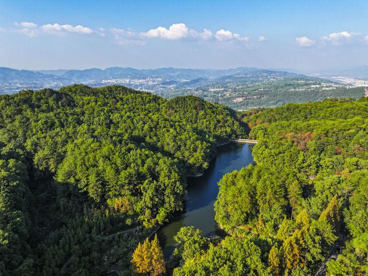 这是2024年10月15日在重庆市北碚区拍摄的缙云山国家级自然保护区景象(无人机照片)。新华社记者 王全超 摄