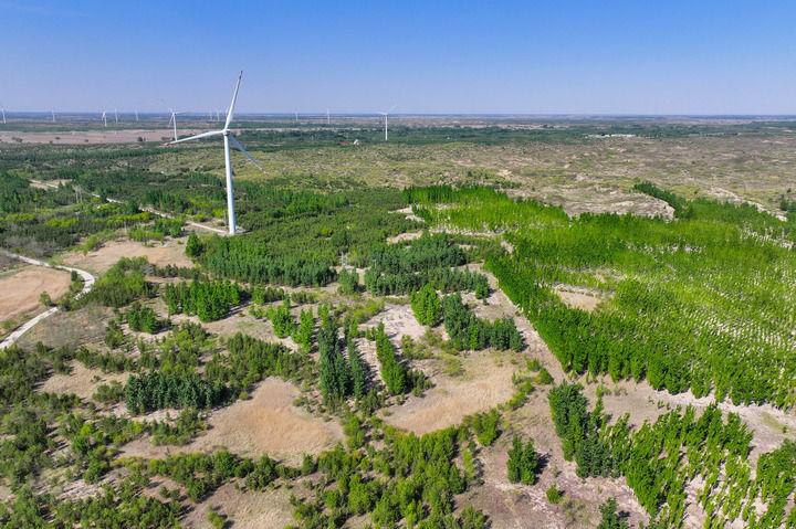 内蒙古自治区通辽市科尔沁左翼后旗,依托三北防护林体系建设、退耕还林、退牧还草等国家重点生态工程,让科尔沁沙地加速披绿。