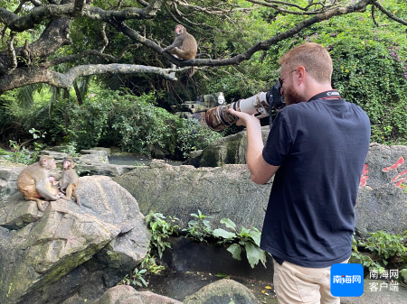 意大利摄影师Fabio在猴岛专注拍摄猕猴。海南国际传播中心供图