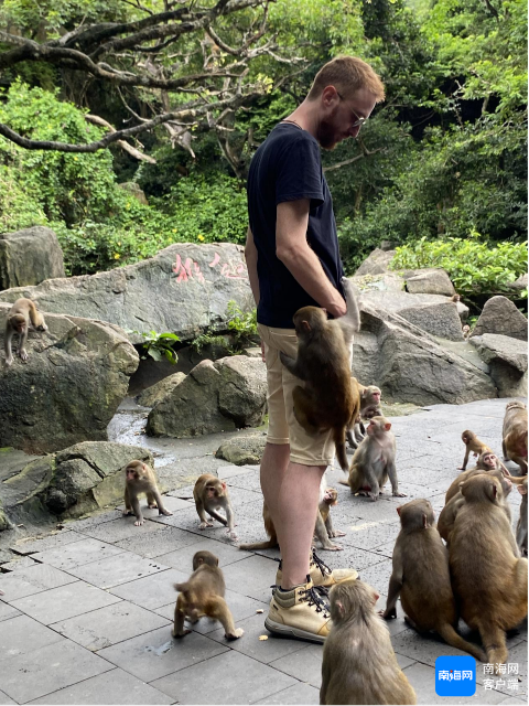 意大利摄影师Fabio体验喂猴。海南国际传播中心供图
