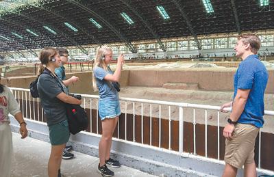 参加“未来之桥”中美青年中国中铁基建智能化建造交流活动的美国青年代表参观秦始皇兵马俑博物馆。