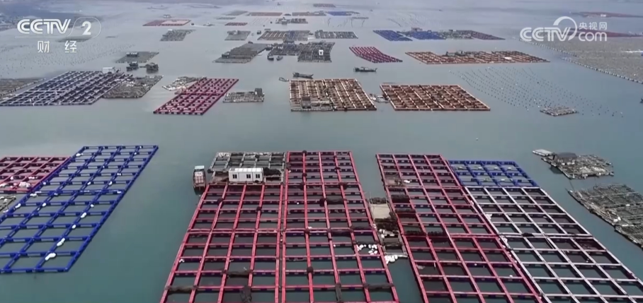 在湛蓝的海面上,成片的渔排和网箱随波荡漾,一艘艘船只穿梭其间,接力运送着刚刚捕捞上来的章鱼。渔民们配合默契,随着渔网的收缩,成群的章鱼浮至水面,渔民们捞起一网又一网的章鱼放入身旁的筐中,随后倒入活水运输船准备出售。
