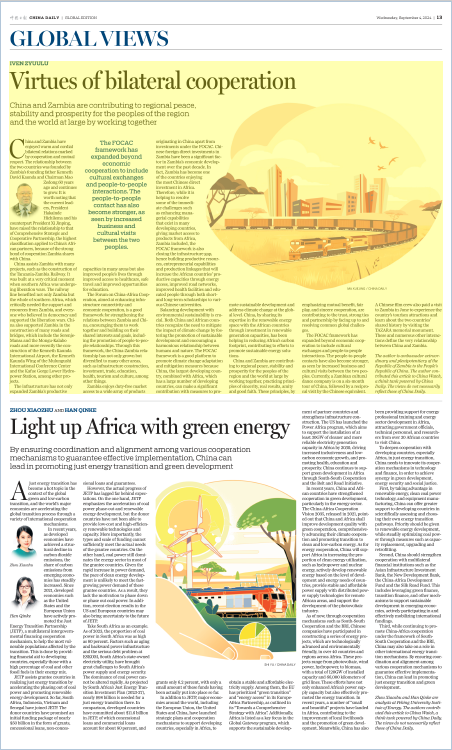 中非合作论坛框架已从经济合作扩展到文化交流与民间互动。中赞民间交流愈加紧密,商业和文化互访日益频繁。最近,中赞艺术团体展开互访。今年6月,中国电影摄制组访问赞比亚,不仅领略了当地旅游胜地,还参观坦赞铁路纪念碑,深入了解两国的共同历史。众多诸如此类的交流项目是当前中赞关系的鲜明写照。
