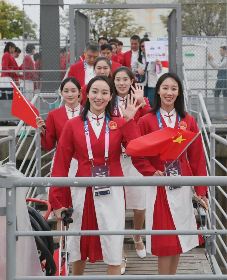 巴黎奥运会开幕式,张雅怡(前排左一)登船