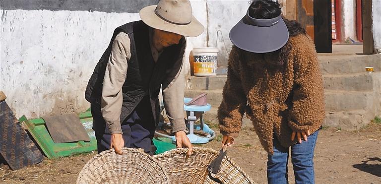 在墨竹工卡县扎雪乡格老窝村,记者走进阿若家的小院。院内,堆积的柳条旁是忙碌的阿若,他的手指在柳条间穿梭,一个个柳条筐子逐渐成形。