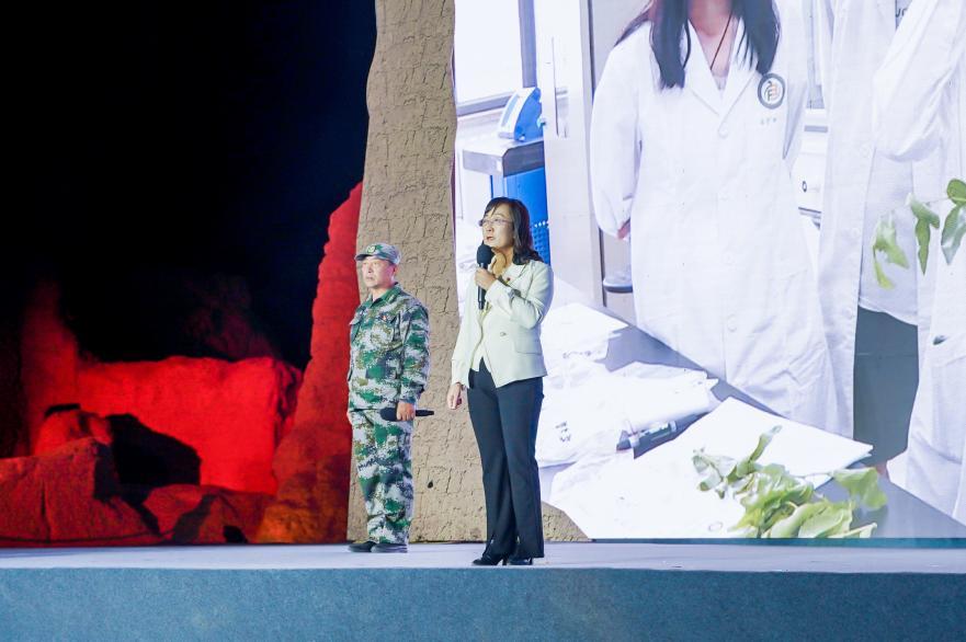 吴翠云(右一)在“何以中国·五星出东方”网络主题宣传活动现场演讲。人民视频供图